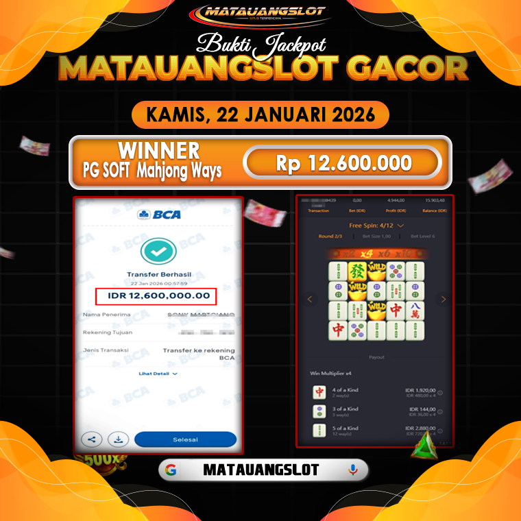 Nama Game : MENANG DARI PEMAINAN SLOT PG SOFT Mahjong Ways